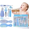 10-Piece Set: Includes nail clipper, nasal aspirator, scissors, brush, comb, thermometer, finger toothbrush, and more.