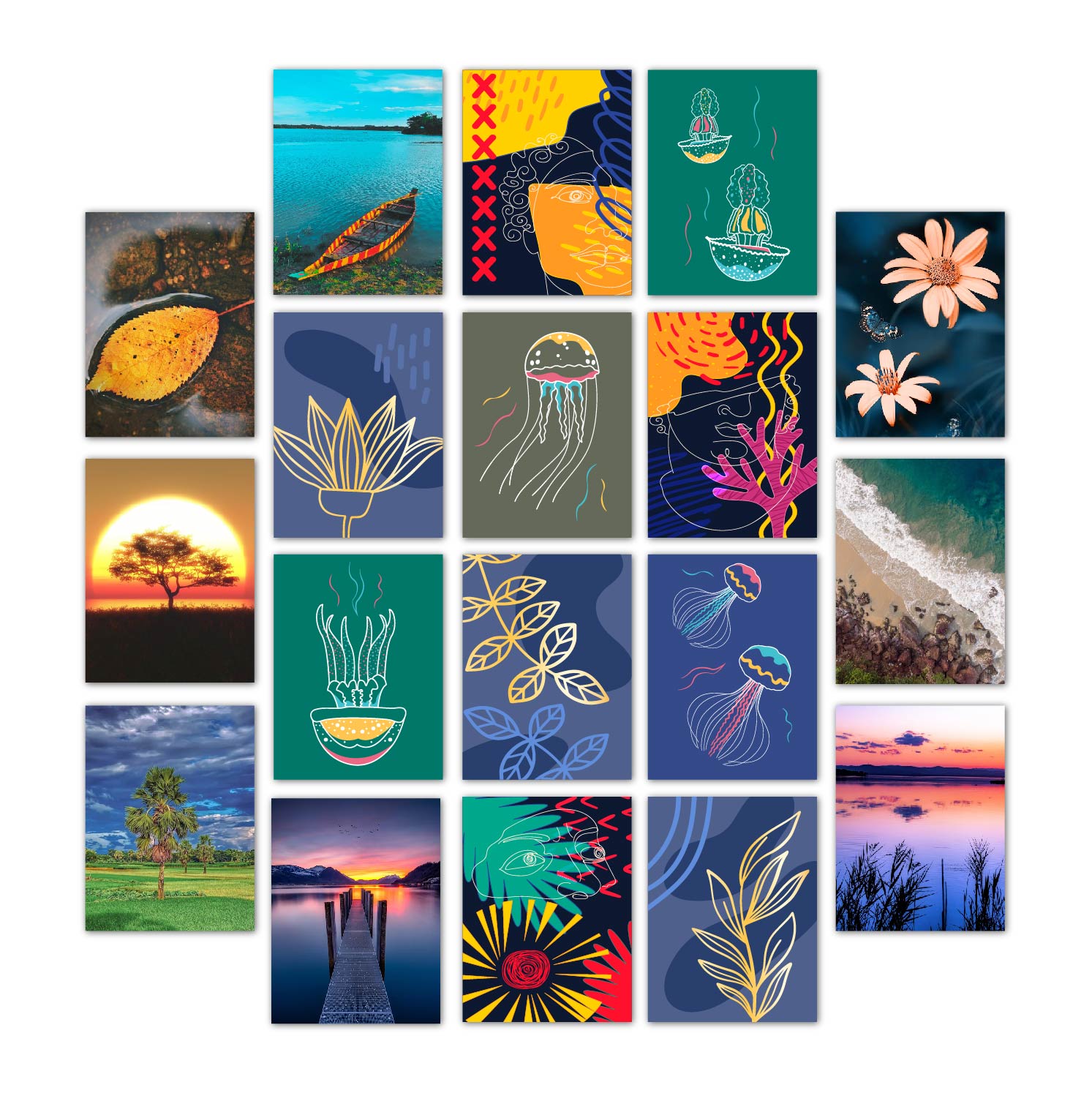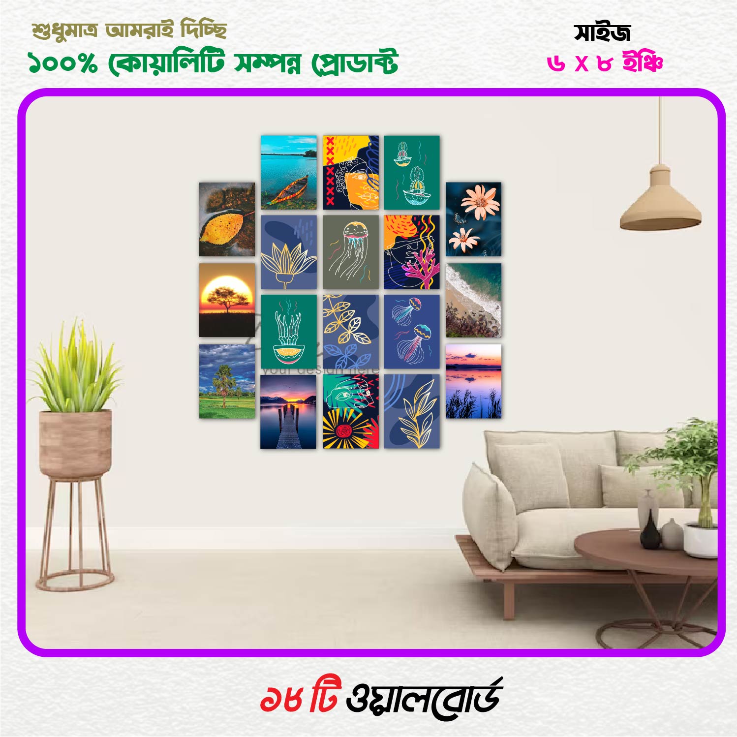 The Arambaz 18 pcs Wallboard Canvas Painting Set is designed to transform plain walls into a complete decorative feature for living rooms or bedrooms. Printed on high-quality canvas with vivid colors, each board fits together to create a stylish and artistic wall layout. Lightweight and ready to hang, it is ideal for modern home interior decoration.
