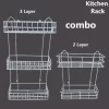 Optimize your kitchen storage with the Square Shape Hanging Rack Combo Set. This set includes 1 piece 3-step rack and 1 piece 2-step rack, designed from high-quality white iron sticks for durability and style.