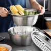 3-in-1 Multifunctional Stainless Steel Basin with Vegetable Cutter & Drain Basket