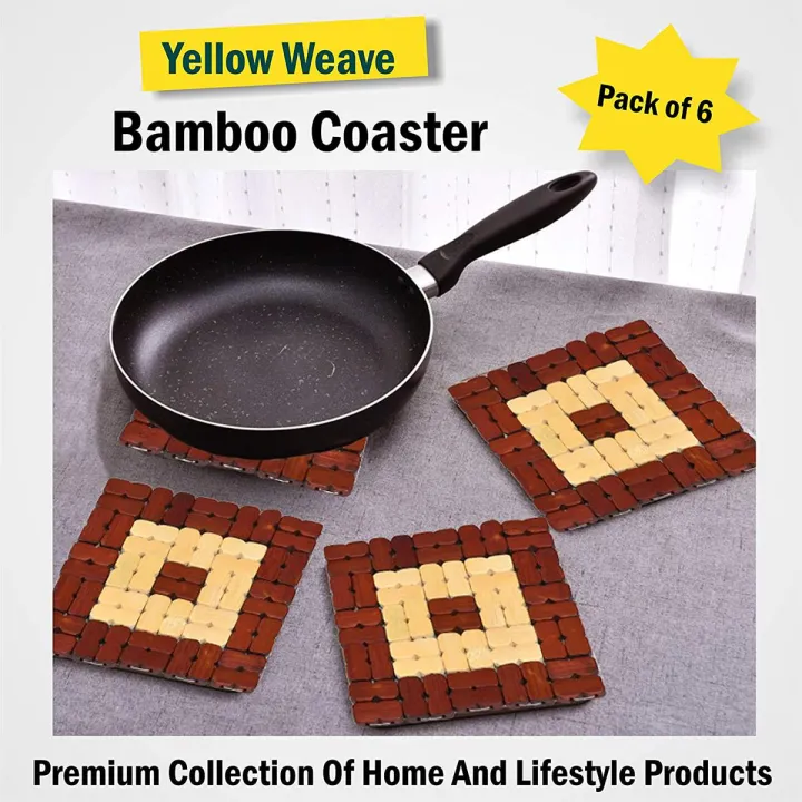 Protect your dining table and kitchen surfaces with this 6-piece bamboo wood coaster and heat insulation pad set. Designed for big pans and pots, these eco-friendly bamboo mats provide excellent heat resistance while adding a natural touch to your home décor.