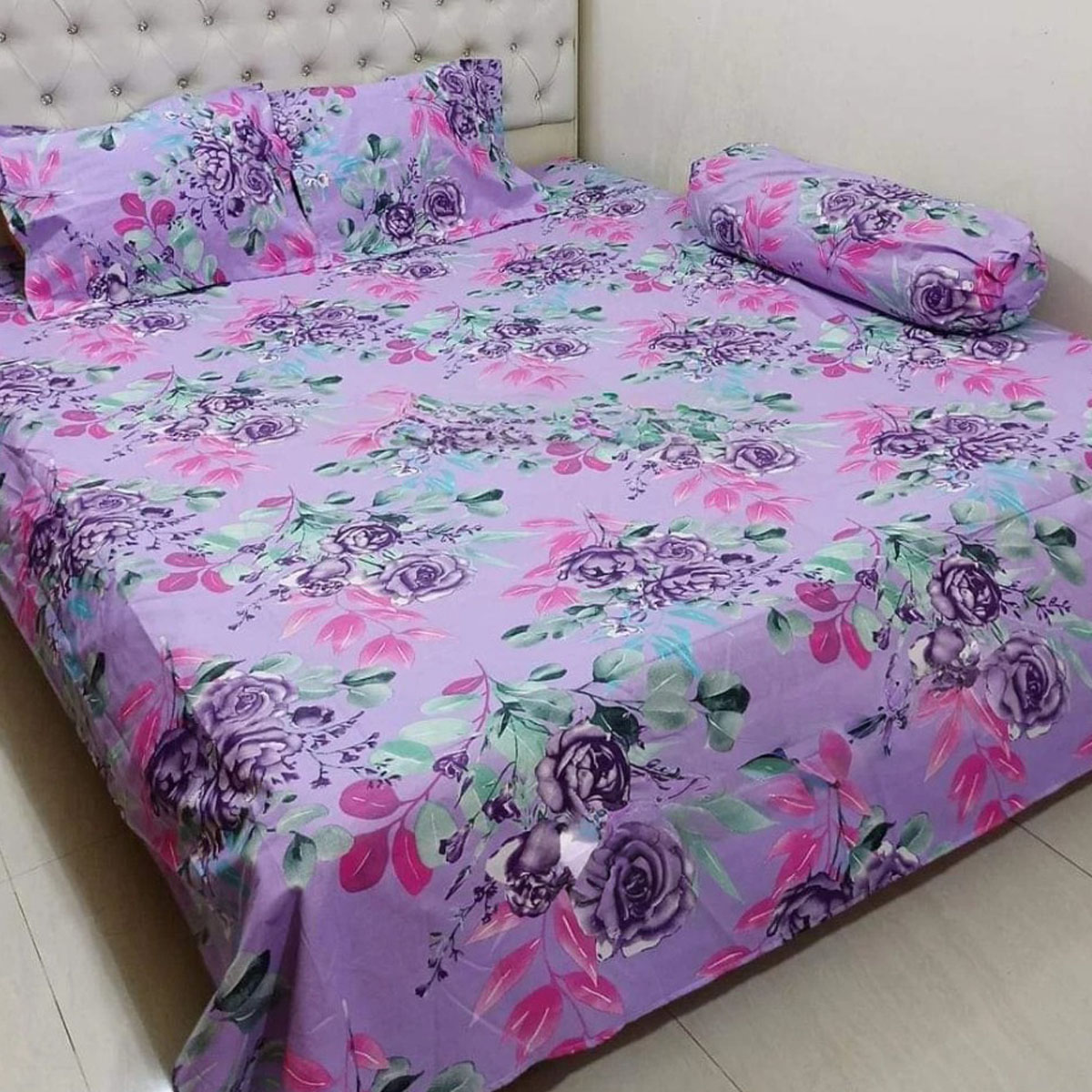 AC HOME TEX King Size Bed Sheet With Two Pillow Covers and One Side Pillow Cover