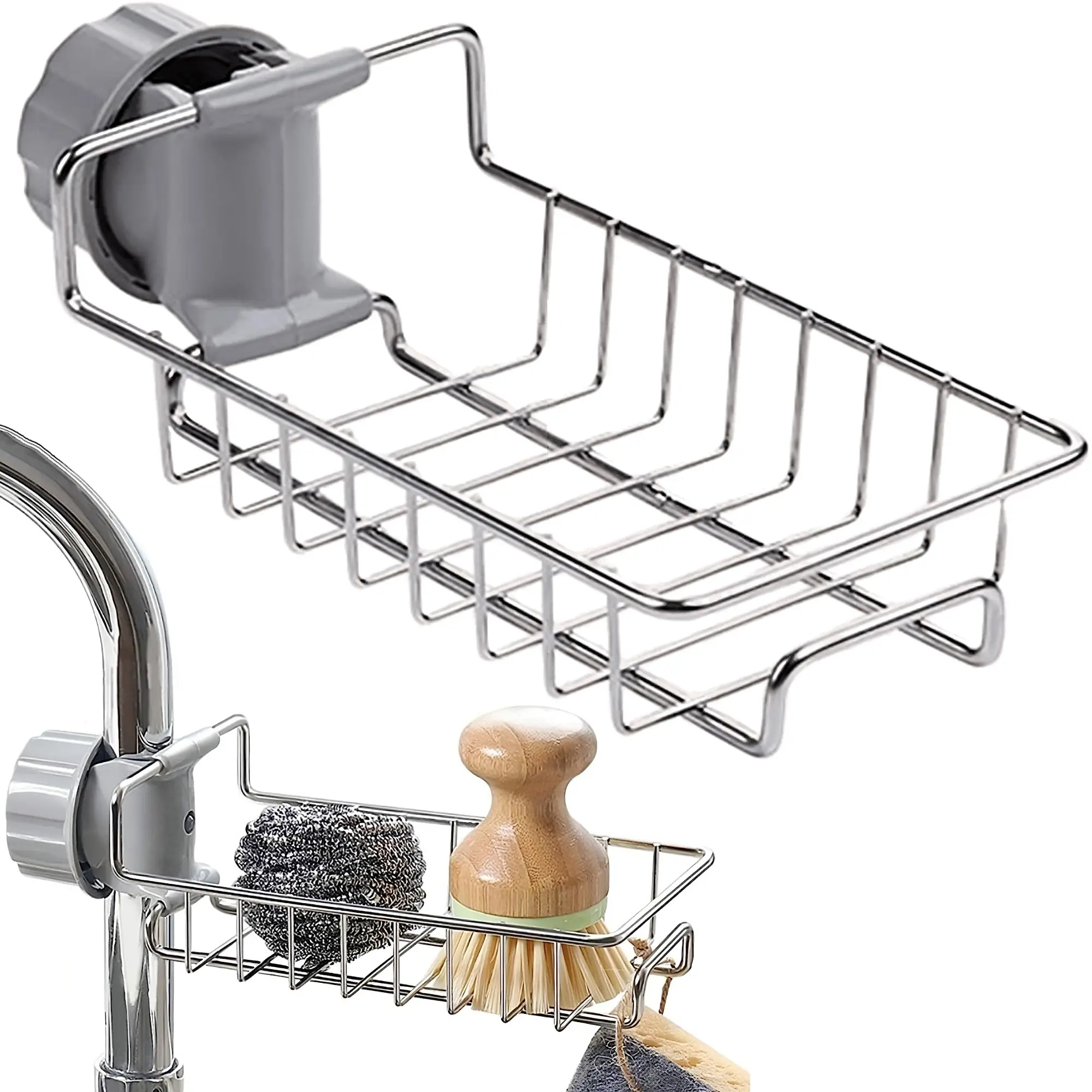 • Multi-Functional Storage: Holds sponges, soap, brushes, and small accessories