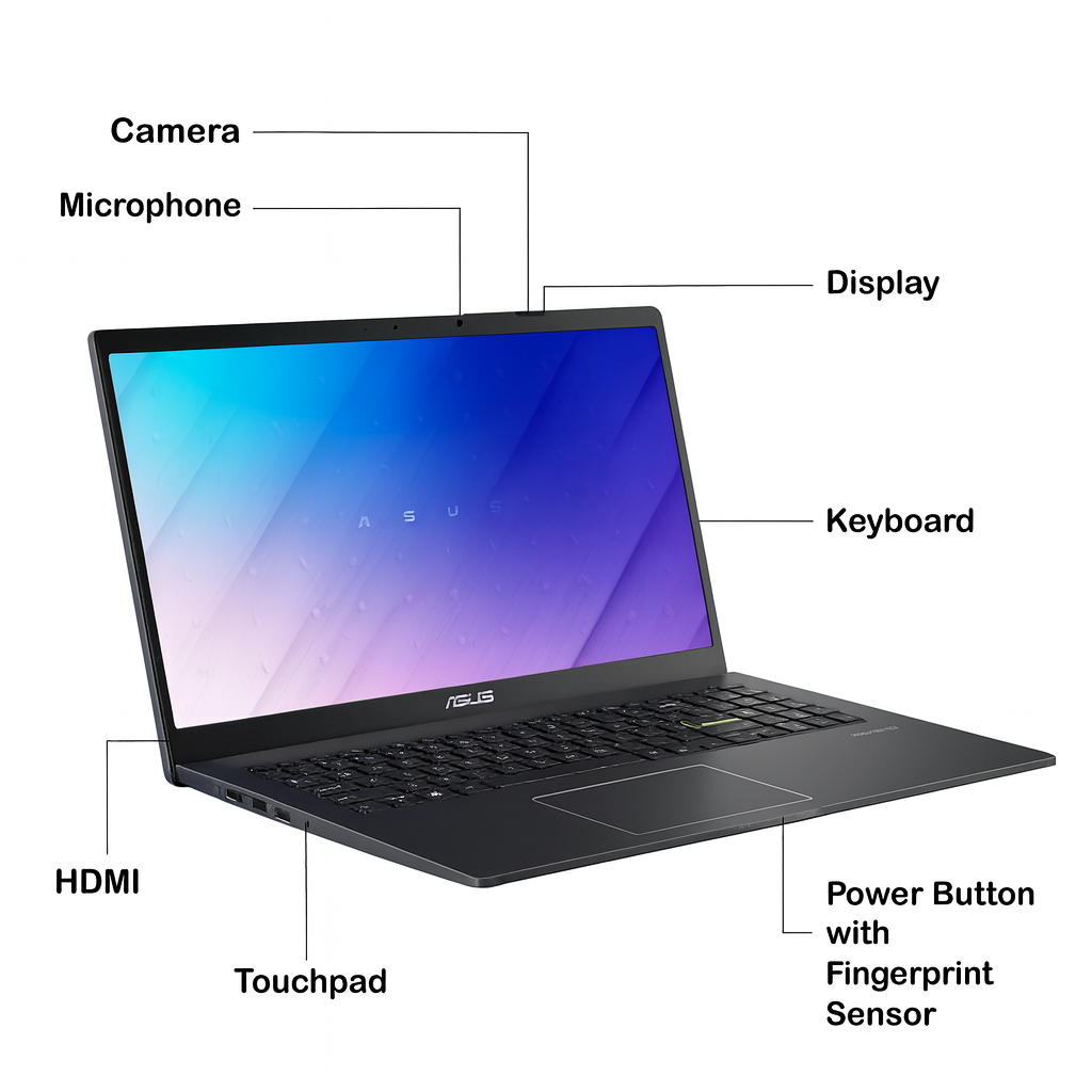Slim, stylish, and made for on-the-go productivity — the ASUS Vivobook Go 15 L510KA is a compact, lightweight laptop that delivers everyday performance at an excellent value. Powered by an Intel Celeron N4500 processor, it features a 15.6″ Full HD display, silent fanless design, and up to 8 hours of battery life, all wrapped in a sleek Star Black finish.