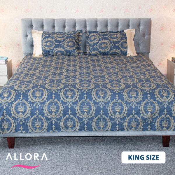 #Allora #BedSheet #NavyTrophyPrint #CottonBedding #HomeDecor #LuxuryBedding #BedroomStyle #Arambaz