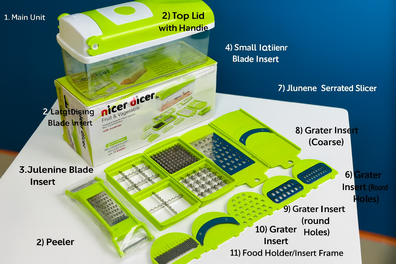 15-in-1 Multi-Function – Includes slicing, dicing, chopping, grating, and shredding options.
