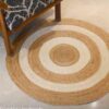 Enhance your home décor with this Round Jute Floor Mat / Rug, featuring a natural jute base with stylish white accents. Eco-friendly and durable, it adds a rustic yet modern touch to any room.