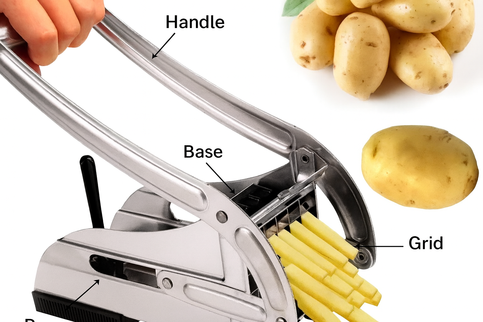 Sharp Cutting Blades – Easily slices potatoes into uniform French fries.